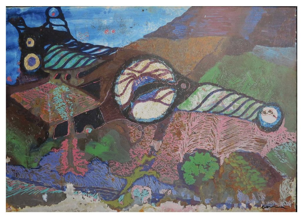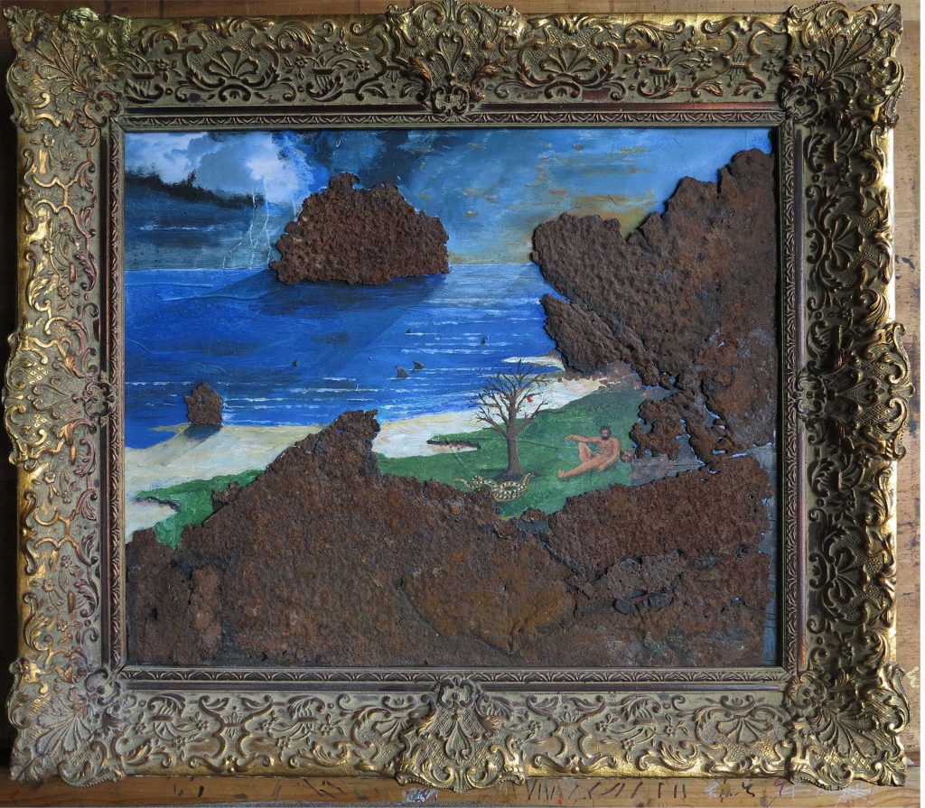 R.-Coura-,Adam-allein-zuhause,-1994,-Acryl-auf-Holz,-40-x-50-cm