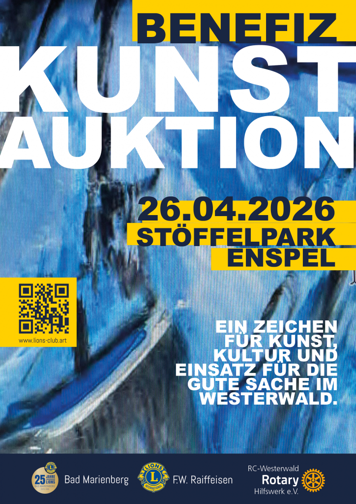 Im April 2026 verwandelt sich der Stöffelpark Enspel in eine Bühne für Kunst, Kultur und soziales Engagement. Die Lions Clubs Bad Marienberg und Altenkirchen sowie der Rotary Club Westerwald laden zu einer einzigartigen Kunstauktion ein, bei der erstklassige Werke renommierter Künstlerinnen und Künstler versteigert werden.